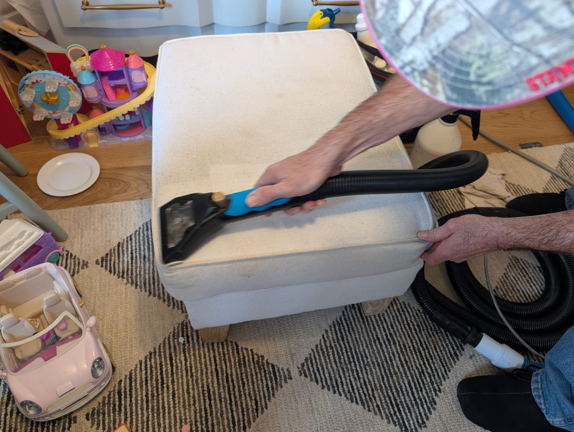 Spread Evenly: Apply the solution across the area you’re cleaning, use an appropriate method to agitate the fibers, working in the cleaner to loosen grime and spots.